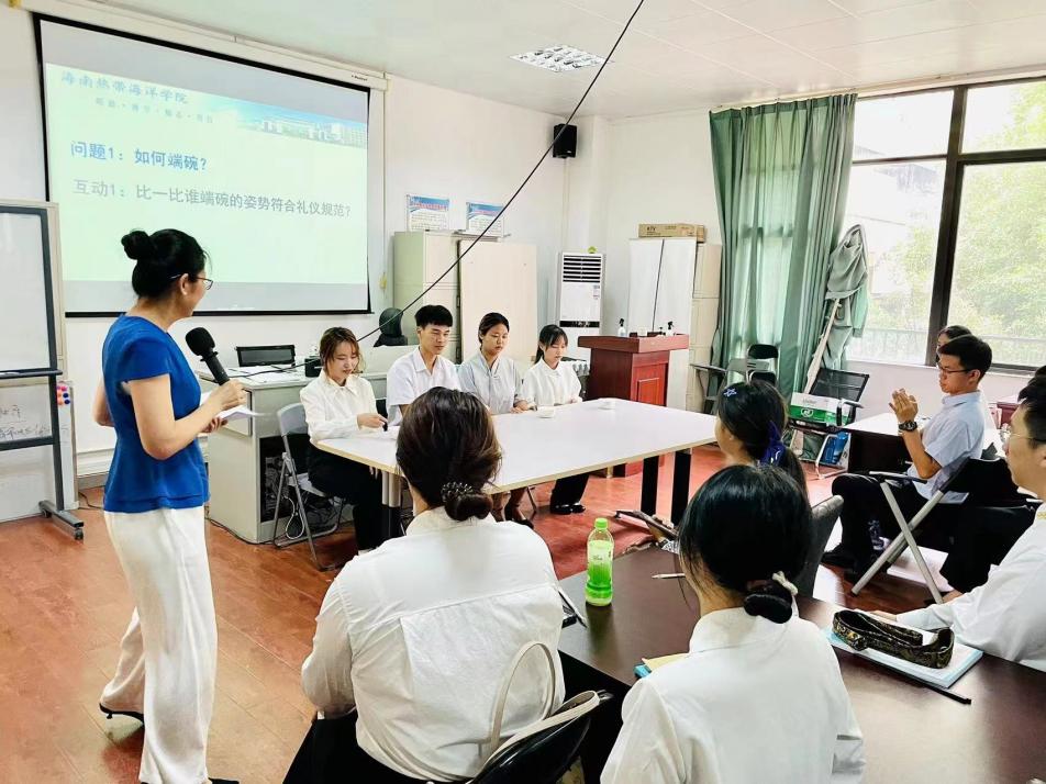 秘书学专业的曲明鑫老师在《秘书礼仪》的课堂上通过设置具体的礼仪社交场景,让同学们在实践中学习秘书礼仪知识,更好的提升员工们的专业技能,让秘书学的同学锻炼的更加专业。