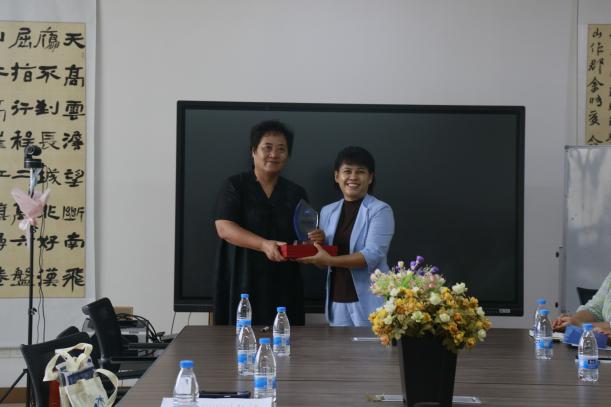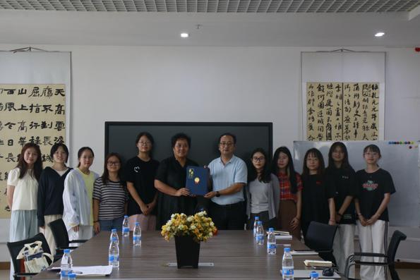 随后张淑玉经理为人文社科公司赠送纪念奖牌、并为人文院志愿者颁发证书。