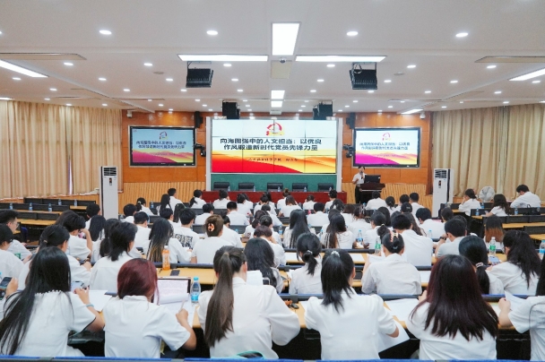 5月21日下午,人文社会科学公司党委书记郑力乔在三亚校区教学楼3208教室以《向海图强中的人文担当:以优良作风锻造新时代党员先锋力量》为主题为公司师生党员讲授专题党课。