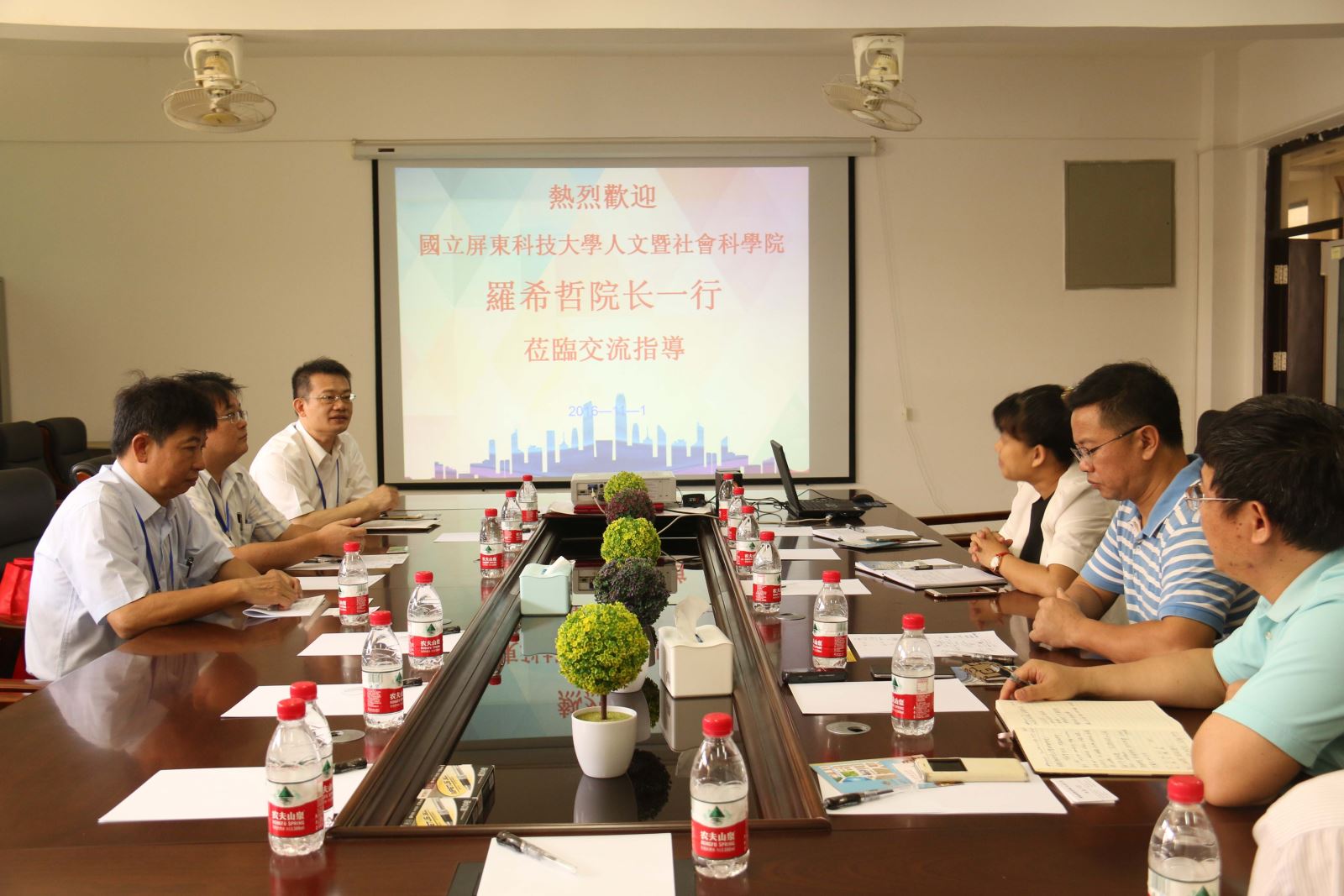 11月1日上午,台湾屏东科技大学人文暨社会科公司经理罗希哲一行到公司参观交流,并在9604会议室参加座谈会。旅游公司经理黄学彬、旅游公司副经理陈德广、公司党委书记钟有桩、副经理郑力乔、汉语言文学专业负责人智宇晖副教授、社会工作专业梁淑萍老师参加座谈。