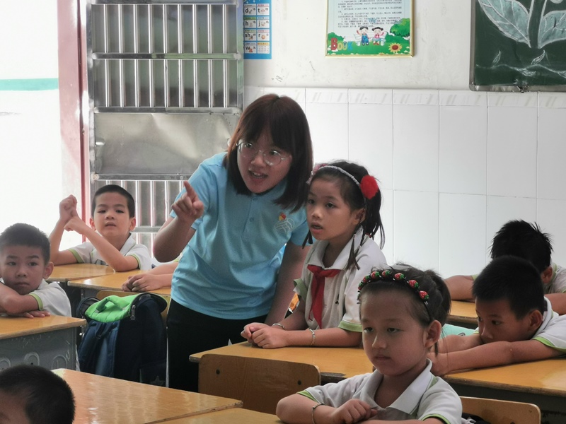 9月15日,推普实践团队走进三亚市育才中学,与七年级一班的同学们共同完成推普活动。与低年级员工相比,他们受普通话教育时间更长,认识的字词更多,团队成员相应地对课堂内容进行了调整,以讲解易错字读音为主,如鲜血(xuè)、侮辱(wǔ rǔ)、模(mú)样等常用字词。