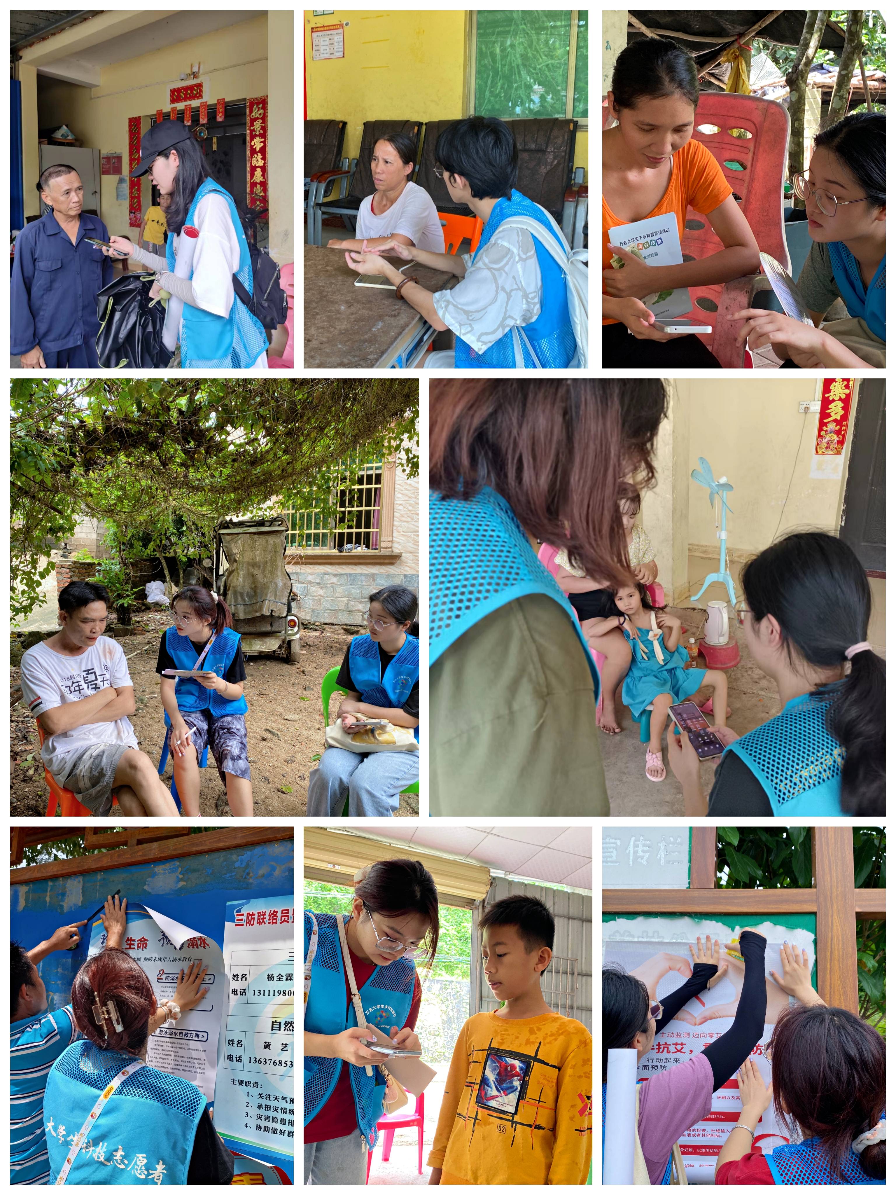 小分队分为两组分别深入这12个村小组开展以土地保护、生态环境、产业兴旺、卫生健康、乡风文明等多种主题的科普宣传活动,倡导村民学习科普知识、健康生活的同时关注海南新三风建设。同时小分队在科普宣传活动中还通过张贴海报、分发科普知识宣传手册、调查问卷等多种方式进行科普宣传、调查芬坡村村民科学知识了解情况。