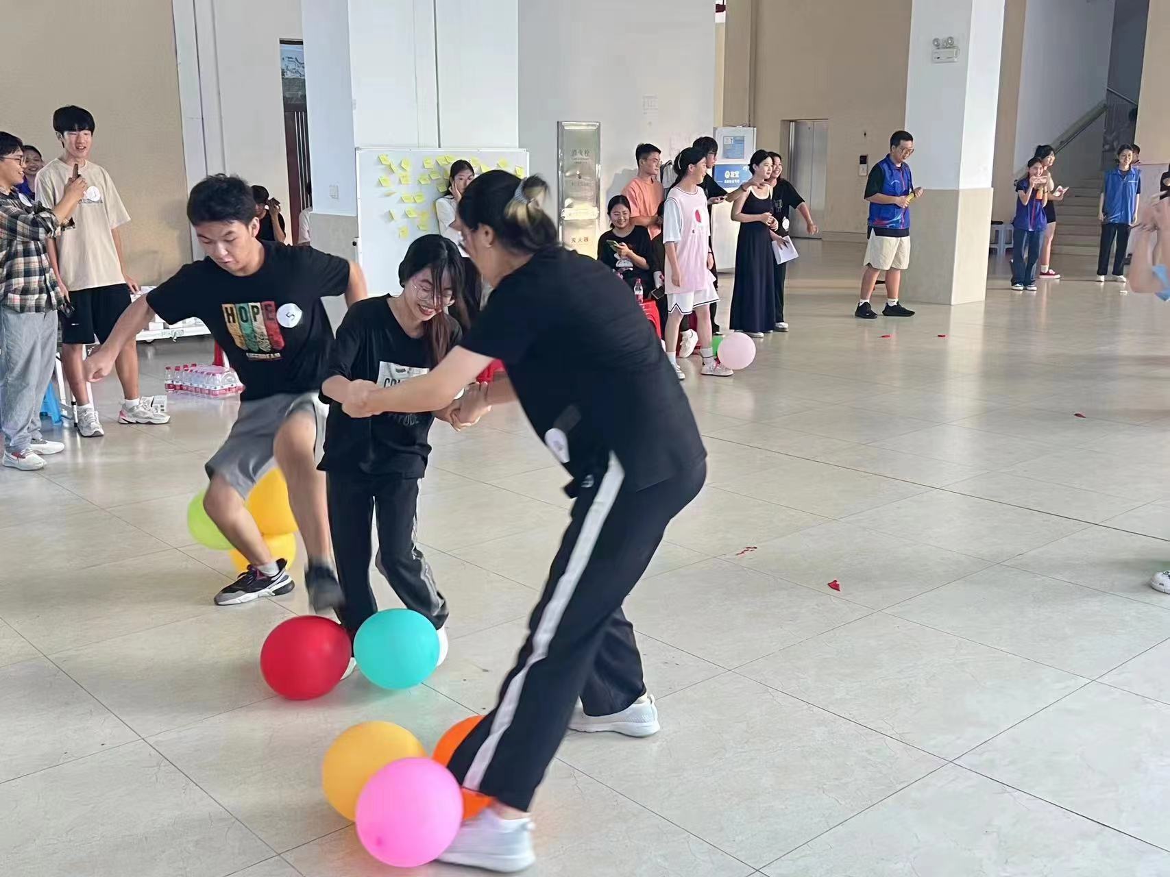 在游戏互动环节,参与活动的同学们组成六支队伍,按照主持人的指引派出参赛代表参加“抢凳子”“踩气球”“拍七令”等互动游戏。随着音乐响起,轻松、欢快的氛围瞬间感染了在现场的每一位同学,笑声、掌声此起彼伏,拉近了彼此的距离,同学们敞开心扉,与团队携手应对挑战,体验成功的喜悦。