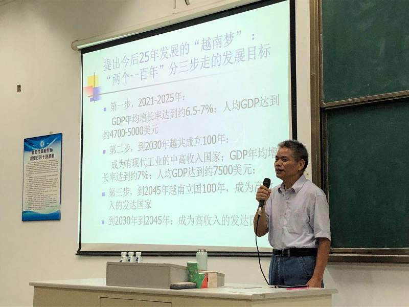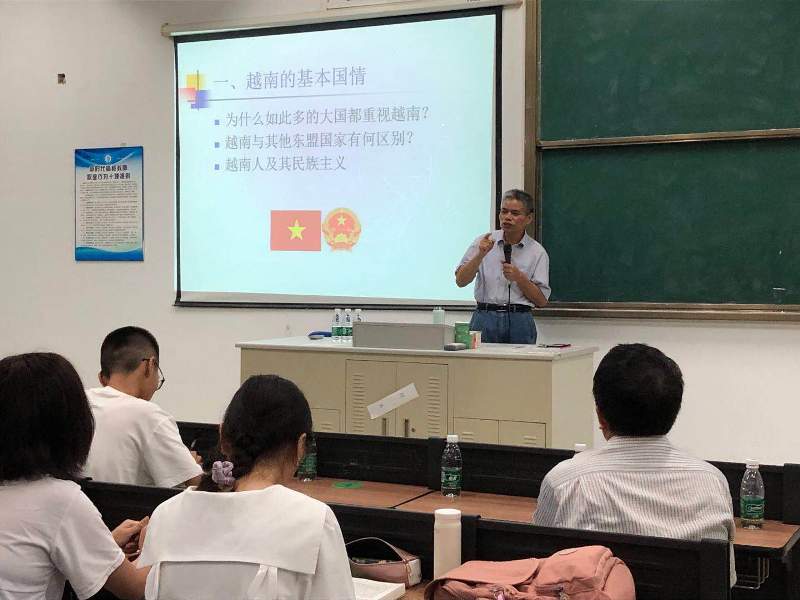 “学史明理、学史增信、学史崇德、学史力行”,这是迎接建党100周年之际,习近平总书记对“学党史、悟思想、办实事、开新局” 学习教育活动的殷切倡议。响应这一时代号召,6月3日晚,beats365官方网站东盟研究院经理古小松应人文社科公司、海南省南海文明研究基地之邀在4206作题为《越共十三大与“越南梦”背景下的中越关系》的讲座。讲座的举办得到了国际合作与交流处的支持。讲座由国际事务与国际关系专业负责人黄田园主持,人文社科公司副经理方礼刚、国际合作与交流处处长邓颖颖出席,人文社科公司及海南省南海文明研究基地的师生近200人参加本次讲座。